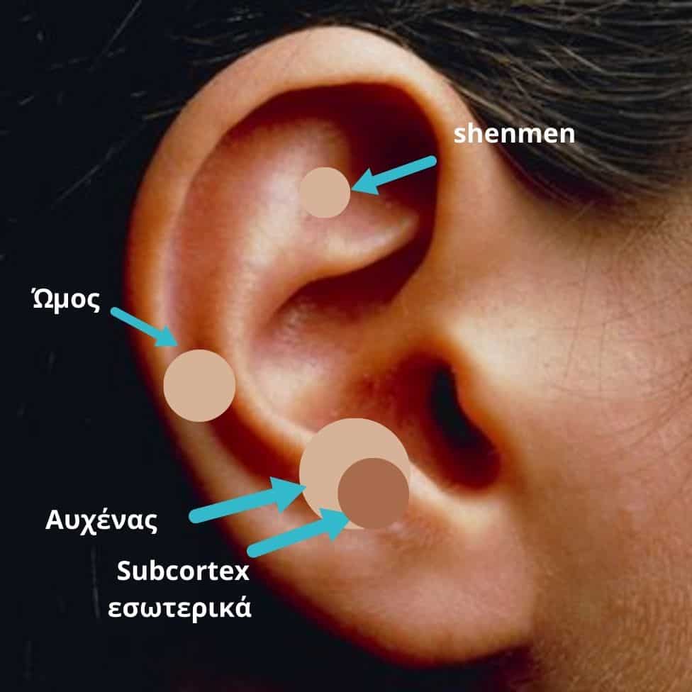 Μαλάζουμε έντονα αρκετές φορές μέσα στην ημέρα τα πιο κάτω σημεία ή τοποθετούμε αυτοκόλλητα σποράκια και τα πιέζουμε αρκετές φορές για ενεργοποίηση.